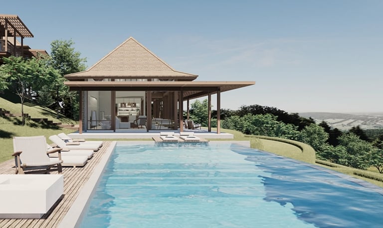 A nature-led destination offering sea-view land and modern vernacular villas within a regenerated landscape near Tampah Beach.